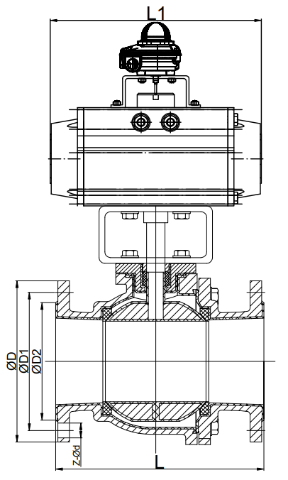 氣動三通塑料球閥外形圖: